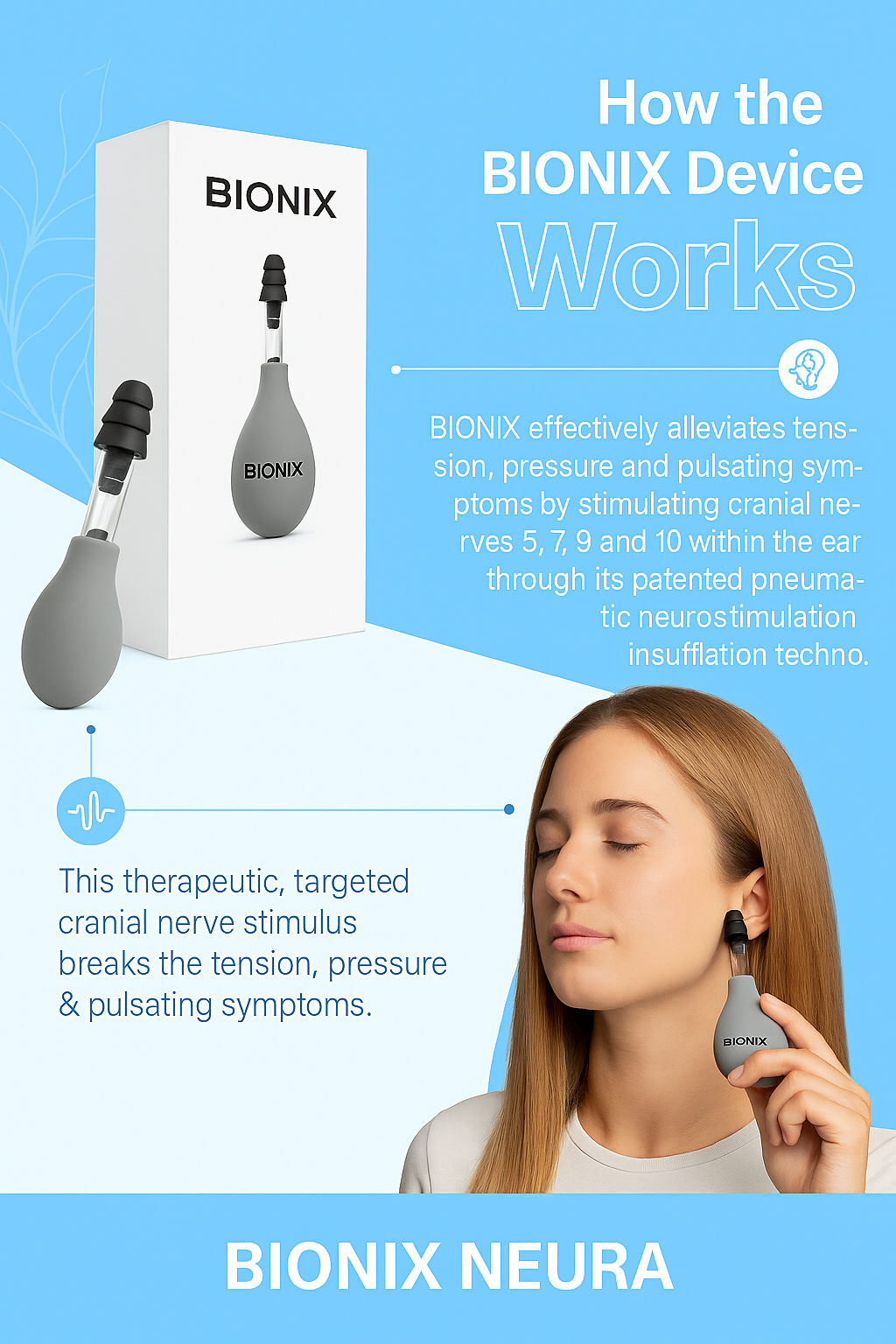 Bionix Neura is designed for adults and teens who suffer from headaches, migraines, sinus pressure, or ear discomfort. (Not recommended for children under 12 without parental supervision.)