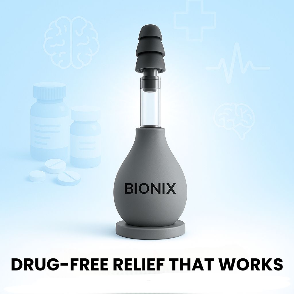 Bionix Neura is a safe, drug-free device that naturally relieves built-up tension and pressure inside the head. By gently equalising ear pressure, it helps reduce headaches, migraines, and sinus-related discomfort.